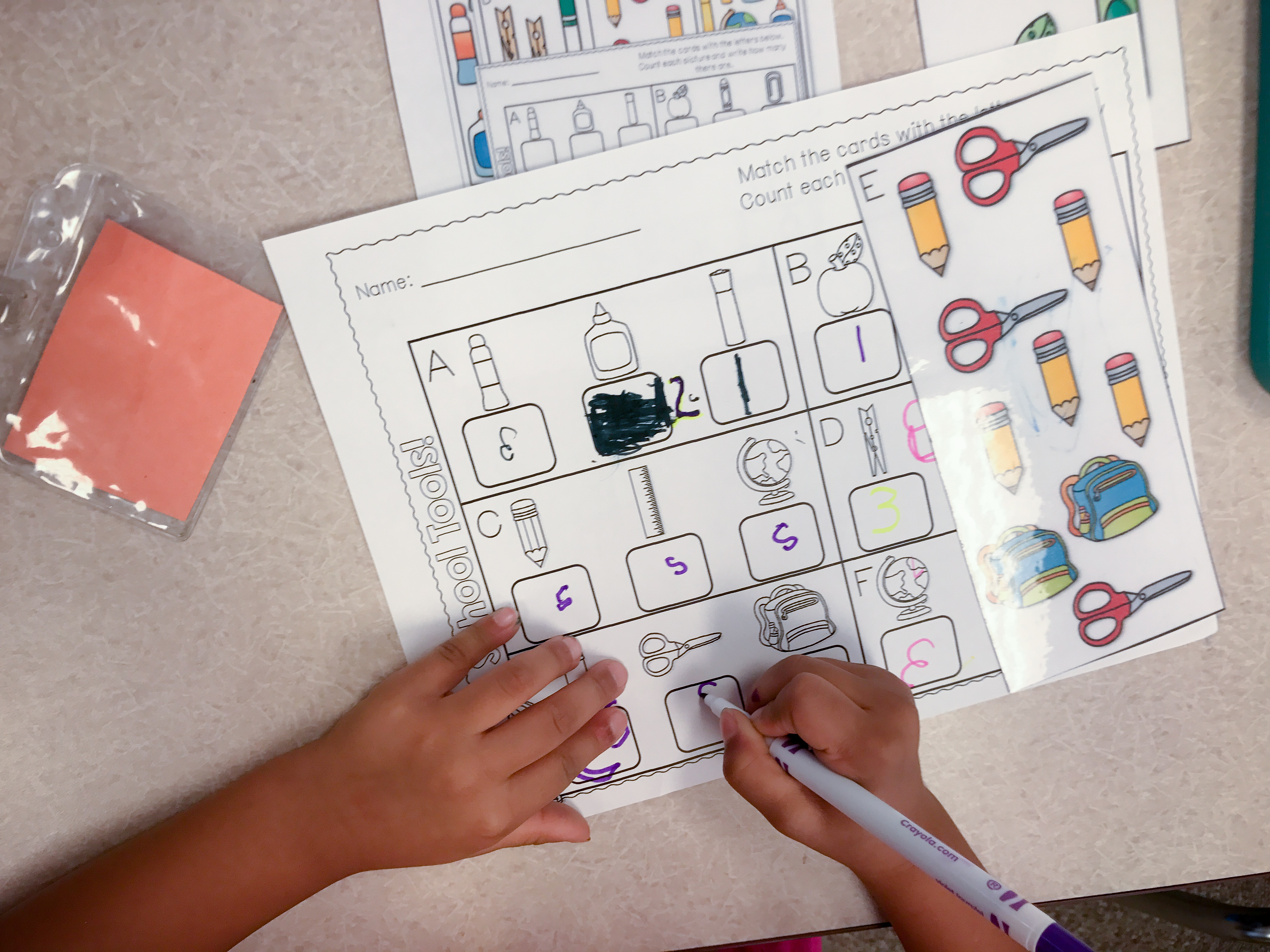This week we moved from all play centers to adding our “work” centers. We have 6 centers each week and I make 3 of them more academic based while the other 3 are still play. All of the work groups also have something to build/play with once they finish the work required. This week our work centers were finding/hole punching letters, counting objects and writing numbers, and matching and coloring sight words. Our class did a great job at all of our centers this week!